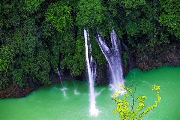 天生三桥是全国罕见的地质奇观生态型旅游区,属典型的喀斯特地貌、属亚洲最大的天生桥群。在天生三桥进站口有一处IP打卡网红爆款景点—天生三桥玻璃眺台,站在全透明透视感的玻璃上,可360度俯瞰整个天生三桥,雄伟壮观景致所带来的视觉冲击不言而喻。