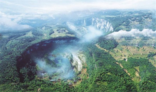 天坑寨子是《爸爸去哪儿2》武隆拍摄地,与武隆天生三桥、印象武隆毗邻,是“武隆喀斯特”世界自然遗产的重要组成部分,拥有“大地之心”的美誉。