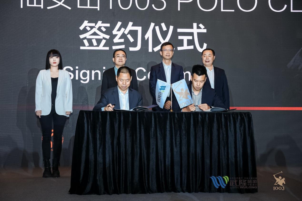在现场领导和嘉宾的见证下,重庆武隆旅游产业(集团)有限公司总经理刘波与1003 POLO全球代表王战完成项目签约仪式。