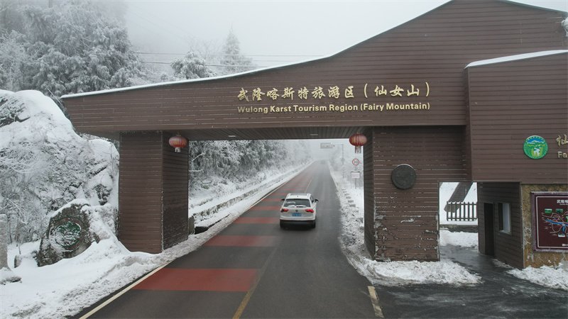 图为仙女山景区道路已经畅通