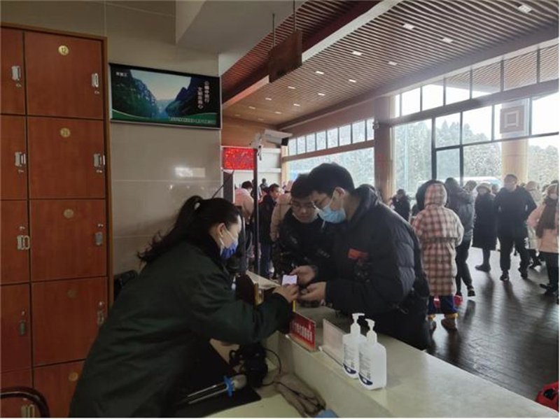 景区在全力除冰除雪保证道路安全畅通外,在景区醒目位置均设置有咨询台、物品寄存点,免费提供轮椅、拐杖等。还在各节点准备热水器,为游客免费提供姜汤等驱寒热饮,为游客提供精细化服务的同时,引导游客有序游览。