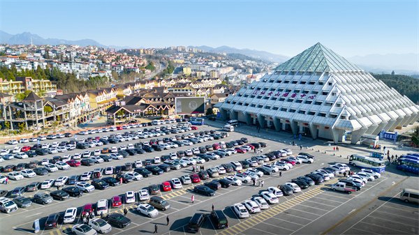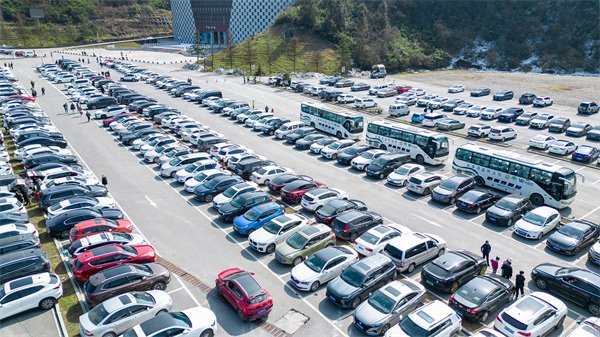 此外,为了应对井喷式人潮,武隆每个景区都设置多个临时停车场,供自驾车辆免费停靠,车辆停放井然有序,成为武隆一道壮观的风景线。航拍武隆各大景区停车场整齐的停车“方阵”,画面和谐让强迫症患者看了极为舒适,舒适的游览环境实力“圈粉”无数。