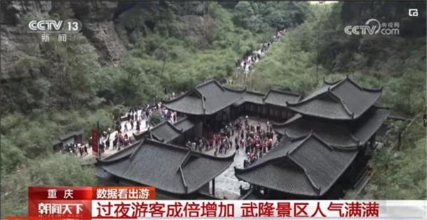 特别值得一提的是,春节期间武隆景区还频频亮相央视等主流媒体,持续为重庆文旅上分。2024年春晚,《印象武隆》节目之一“太阳出来喜洋洋”惊艳演出,获全社会关注以及媒体纷纷报道;2月13日(大年初四)20:00,中国武隆·金树国际纪录片周闭幕式盛典,在CETV1频道正式首播;2月14日(大年初四)8:00,武隆景区人气满满登上CCTV-13新闻频道《朝闻天下》。