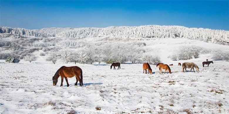 冬日仙女山,以瑶峰琼壑的素洁冬景和独有的融合游牧民族风情的冰雪资源成为南国冬日里的一处赏雪仙境。当33万亩森林与10万亩草原被冰雪覆盖。