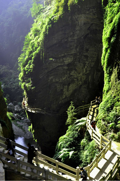 龙水峡地缝是世界自然遗产地,它是几千万年前造山运动而形成,属典型的喀斯特地貌景观,峡谷长5公里,谷深200-500米,其规模宏大,气势磅礴,峡谷具有雄、险、峻、秀等特点,被誉为“地球最美裂痕”。